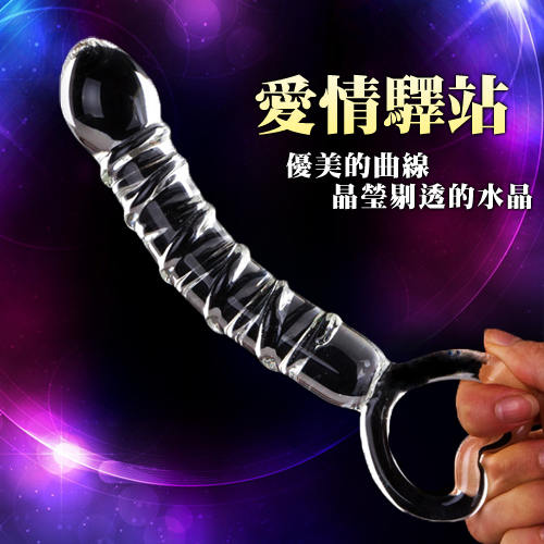 愛情驛站 螺紋拉環冰晶玻璃按摩棒(特)