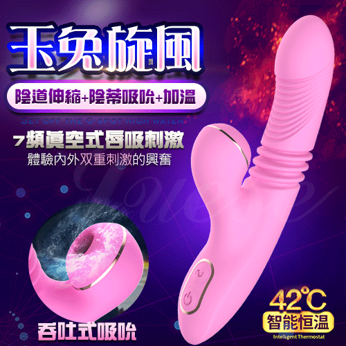 Dibe-玉兔旋風7代 7頻伸縮搖擺吸吮 加溫震動按摩棒-粉