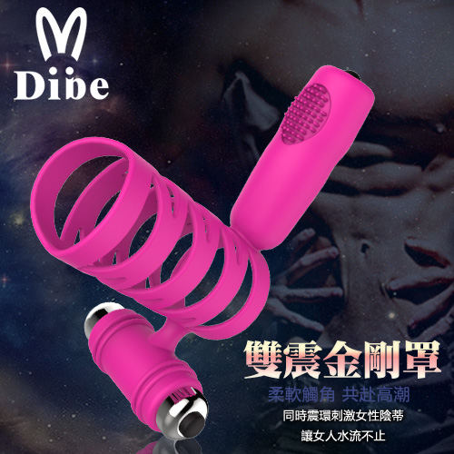 Dibe-雙震金剛罩 強力鎖精矽膠陰蒂雙震動器-粉(特)